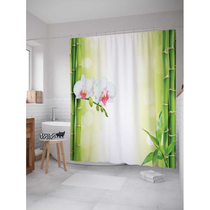 - Модель: Штора для ванной Орхидея и бамбук 180х200 см