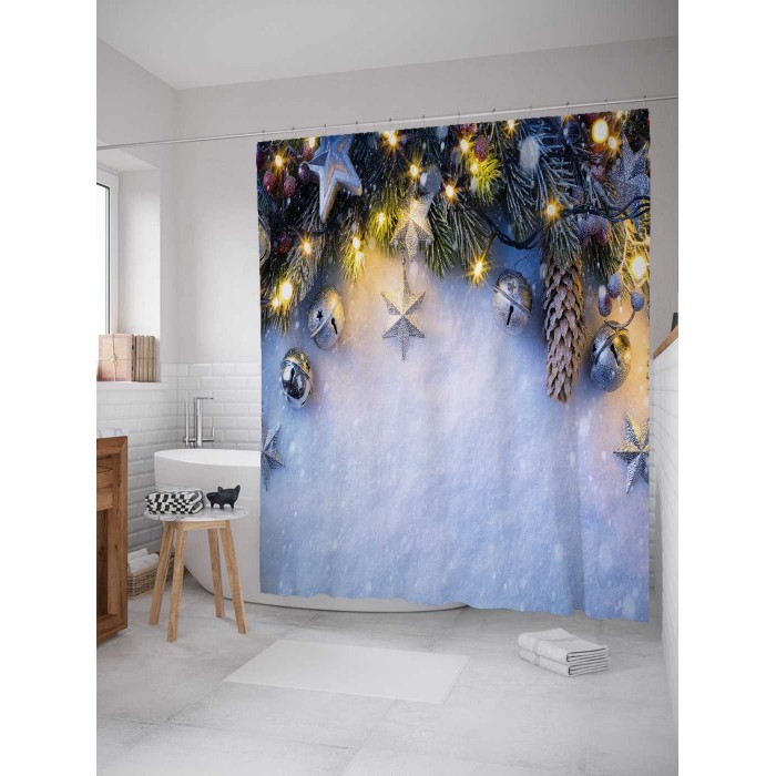 Шторка-занавеска для ванной JOYARTY Штора для ванной Праздничный снег 180х200 см