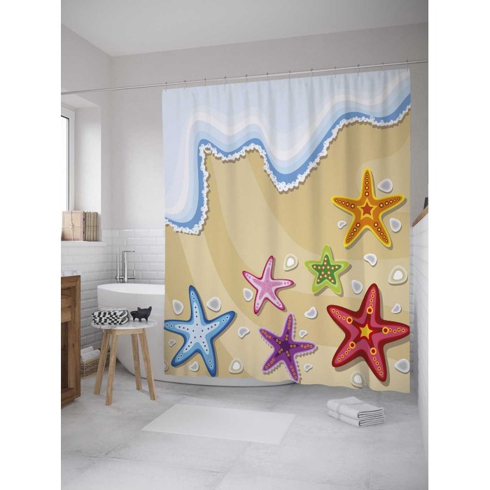 - Модель: Штора для ванной Морские звезды 180х200 см