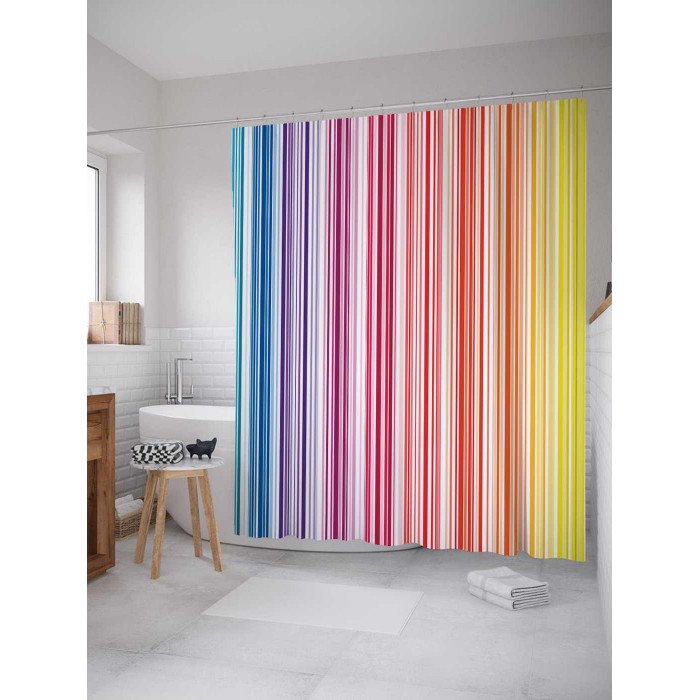 - Модель: Штора для ванной Переливающиеся полосы 180х200 см