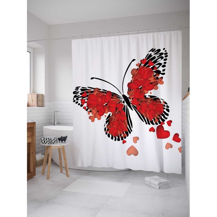 - Модель: Штора для ванной Бабочка любви 180х200 см