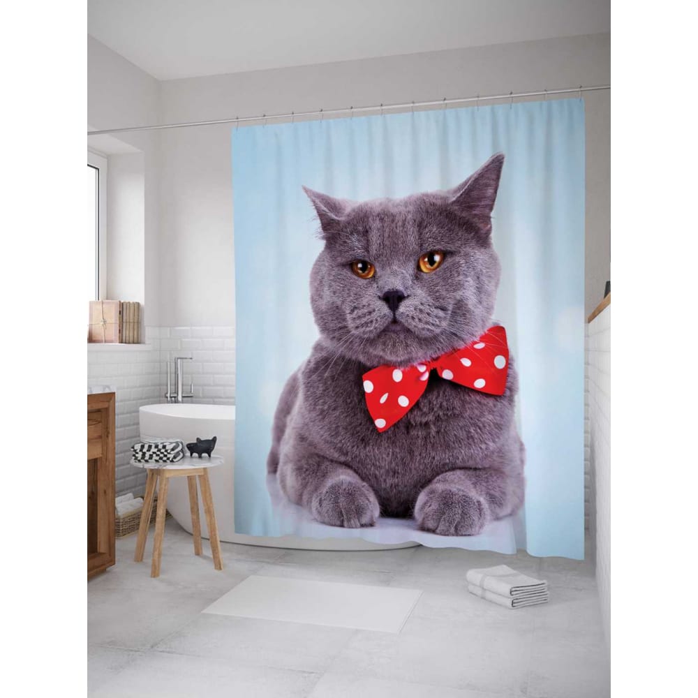 Шторка-занавеска для ванной JOYARTY Штора для ванной Серый Тема Шотландская Вислоухая 180х200 см