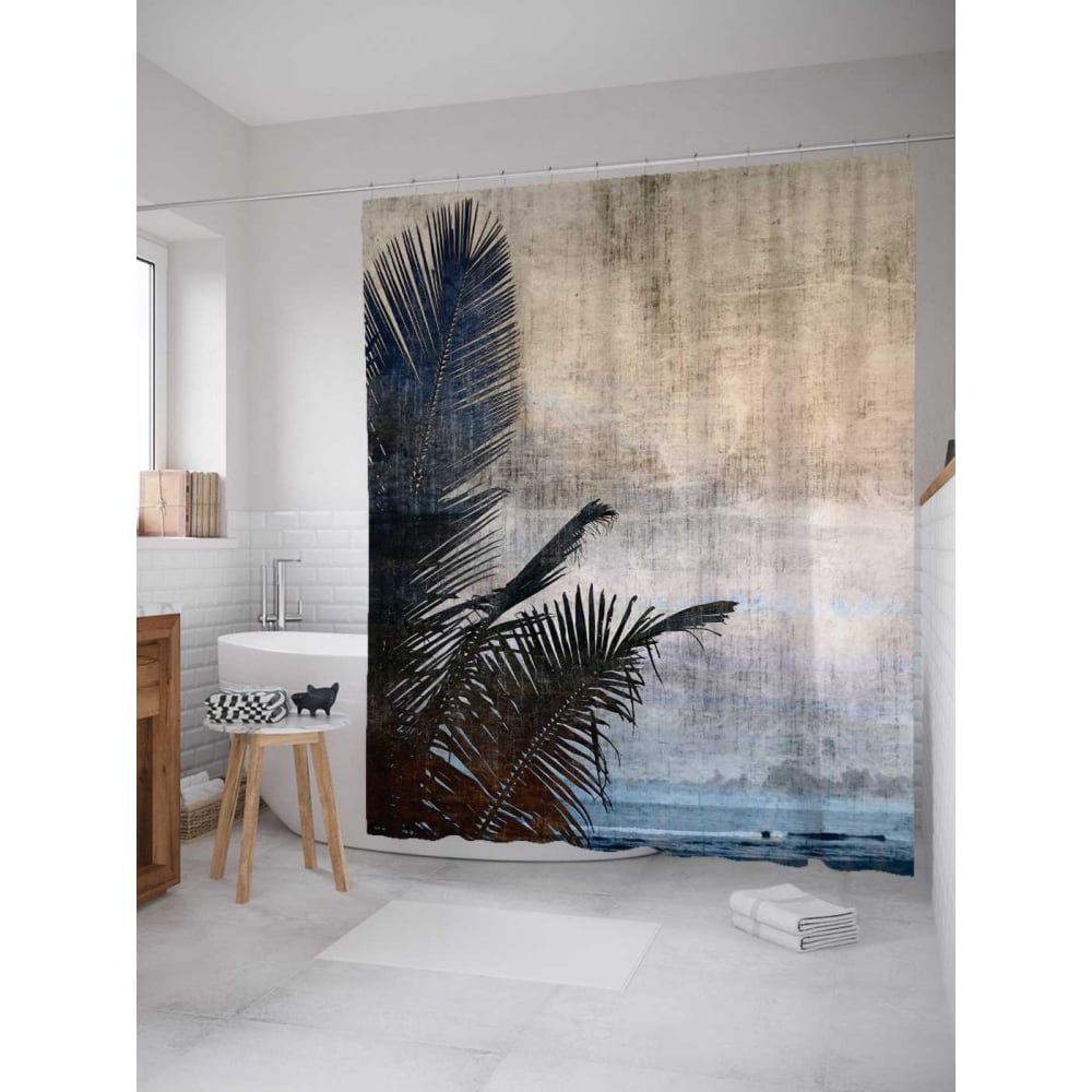 Шторка-занавеска для ванной JOYARTY Штора занавеска из сатена с крючками Туманные тропики 200х180 см (размер: 180х200)