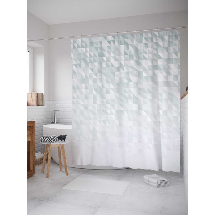 Шторка-занавеска для ванной JOYARTY Штора занавеска из сатена с крючками Треугольные переходы 200х180 см (размер: 180х200)