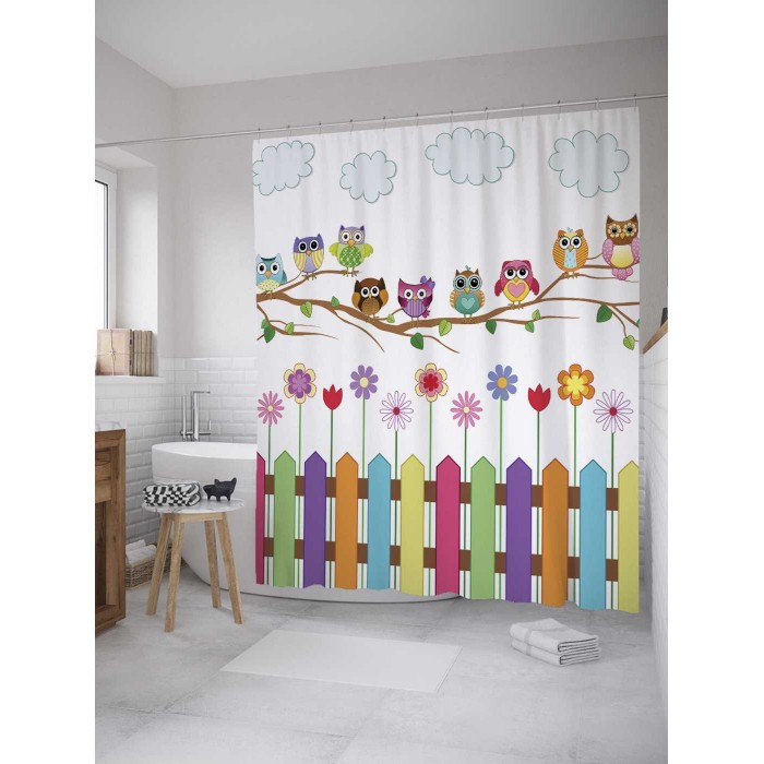 Шторка-занавеска для ванной JOYARTY Штора занавеска из сатена с крючками Сонные совы 200х180 см (размер: 180х200)