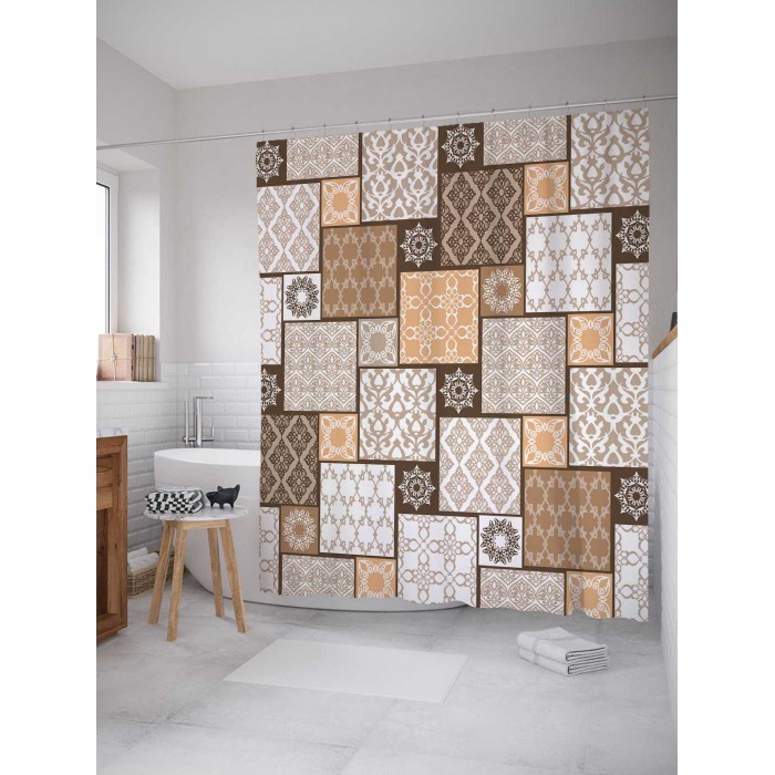 - Модель: Штора занавеска из сатена с крючками Плиточный креатив 200х180 см