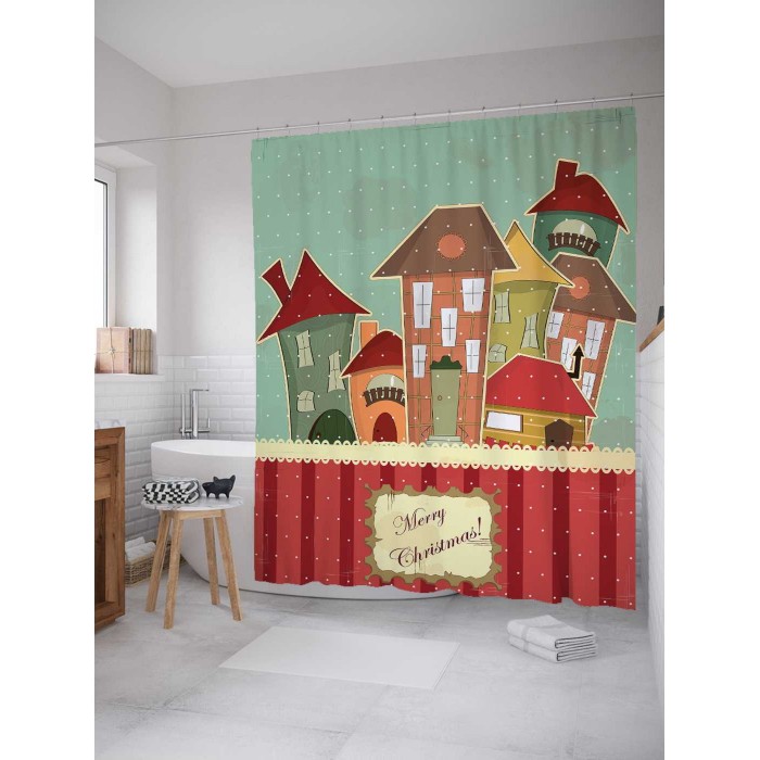 Шторка-занавеска для ванной JOYARTY Штора занавеска из сатена с крючками Праздник приходит 200х180 см (размер: 180х200)