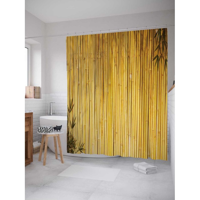 Шторка-занавеска для ванной JOYARTY Штора занавеска из сатена с крючками Бамбуковые стебли 200х180 см (размер: 180х200)