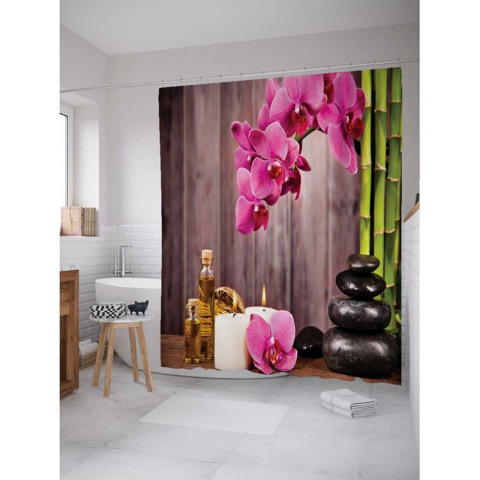 Шторка-занавеска для ванной JOYARTY Штора занавеска из сатена с крючками Приготовление к массажу 200х180 см (размер: 180х200)