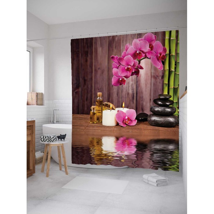 Шторка-занавеска для ванной JOYARTY Штора занавеска из сатена с крючками Нежность со свечами 200х180 см (размер: 180х200)