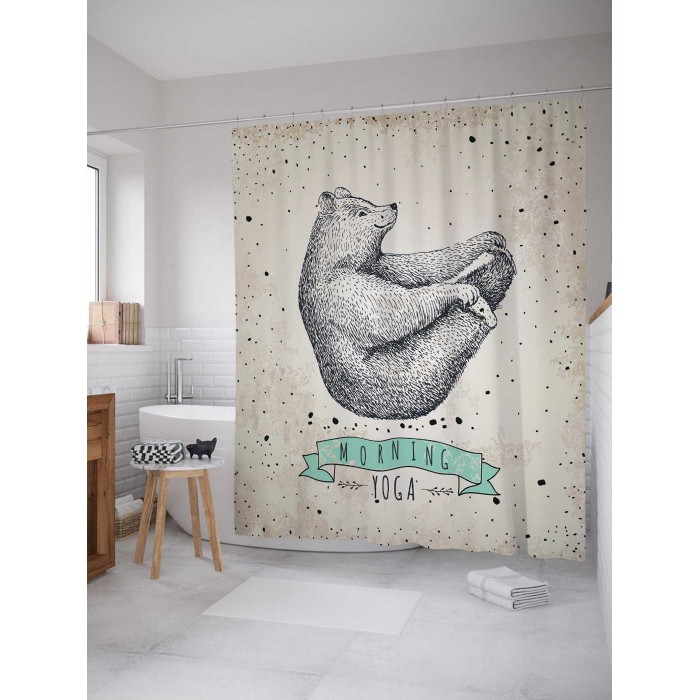Шторка-занавеска для ванной JOYARTY Штора занавеска из сатена с крючками Утренняя йога с медведем 200х180 см (размер: 180х200)