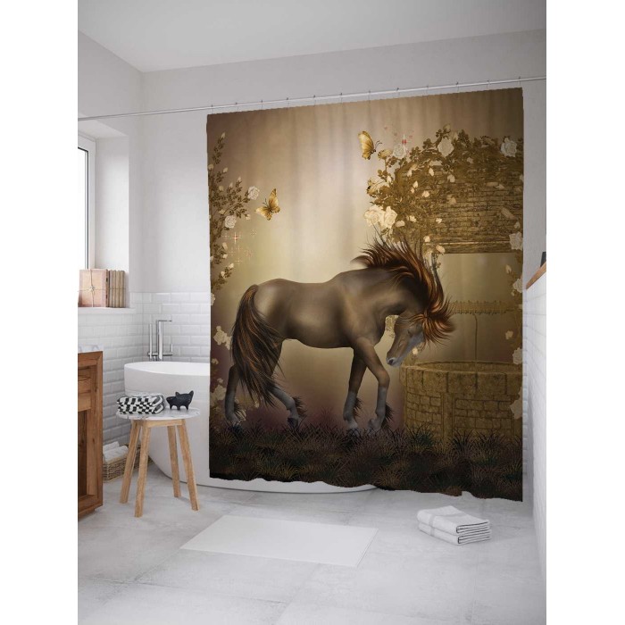Шторка-занавеска для ванной JOYARTY Штора занавеска из сатена с крючками Задумчивая лошадь 200х180 см (размер: 180х200)