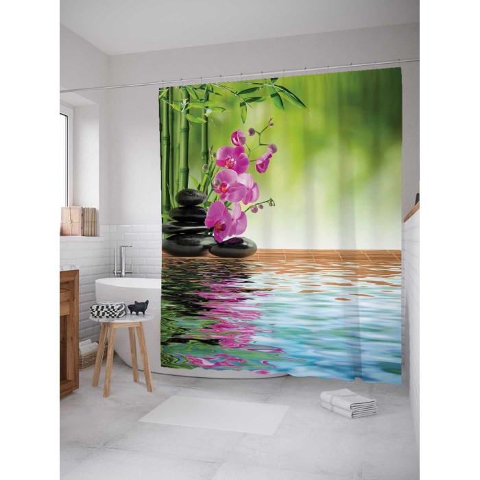 Шторка-занавеска для ванной JOYARTY Штора занавеска из сатена с крючками Водная релаксация 200х180 см (размер: 180х200)