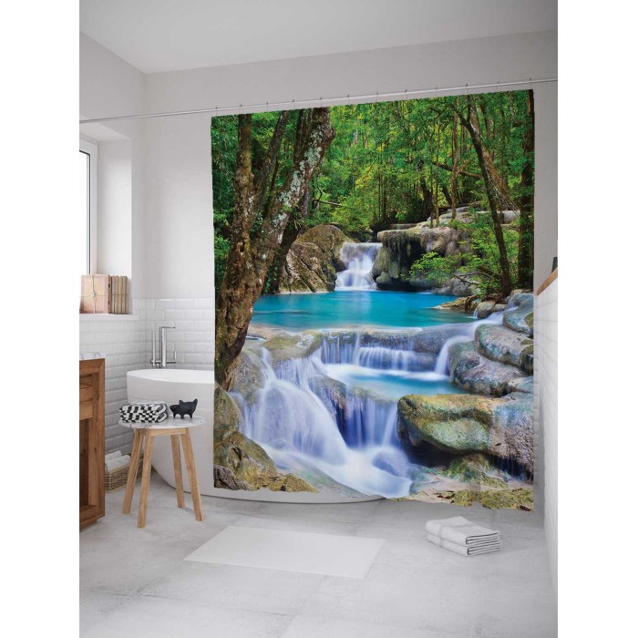 Шторка-занавеска для ванной JOYARTY Штора занавеска из сатена с крючками Волшебное течение 200х180 см (размер: 180х200)