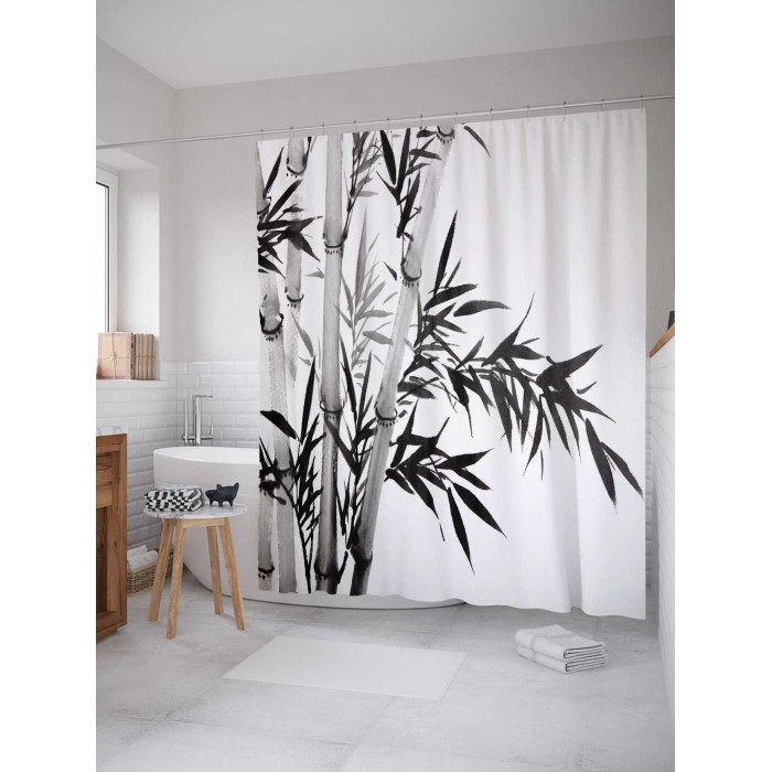 Шторка-занавеска для ванной JOYARTY Штора занавеска из сатена с крючками Бамбуковая надежда 200х180 см (размер: 180х200)