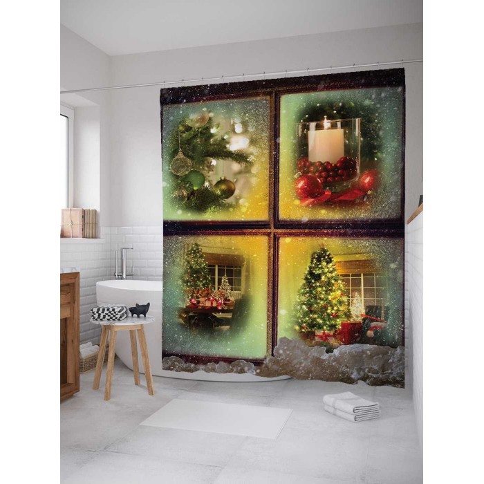 Шторка-занавеска для ванной JOYARTY Штора занавеска из сатена с крючками Праздничный уют 200х180 см (размер: 180х200)