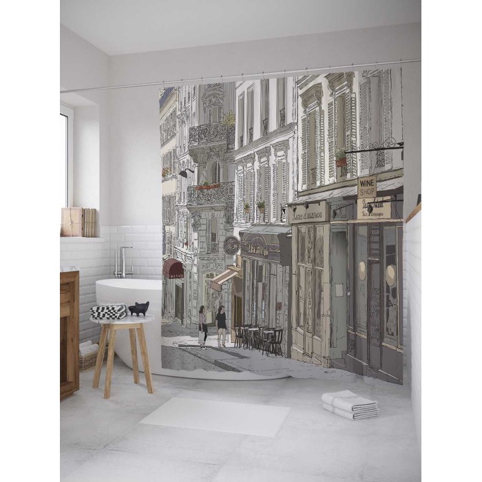 Шторка-занавеска для ванной JOYARTY Штора занавеска из сатена с крючками Уютная улица 200х180 см (размер: 180х200)