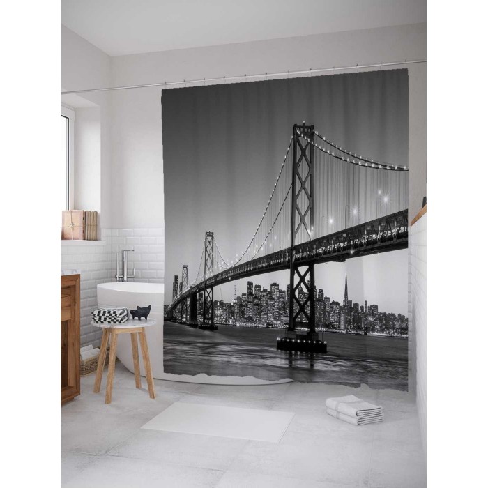 Шторка-занавеска для ванной JOYARTY Штора занавеска из сатена с крючками Серые ночи 200х180 см (размер: 180х200)