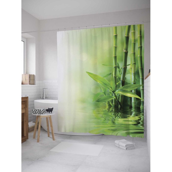 Шторка-занавеска для ванной JOYARTY Штора занавеска из сатена с крючками Бамбук у воды 200х180 см (размер: 180х200)