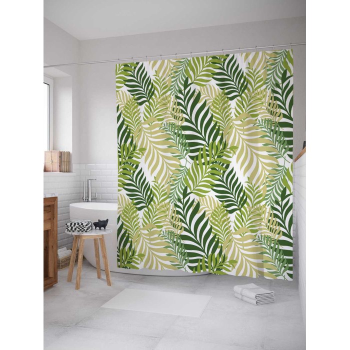 Шторка-занавеска для ванной JOYARTY Штора занавеска из сатена с крючками Лиственная композиция 200х180 см sc_13297 (размер: 180х200)