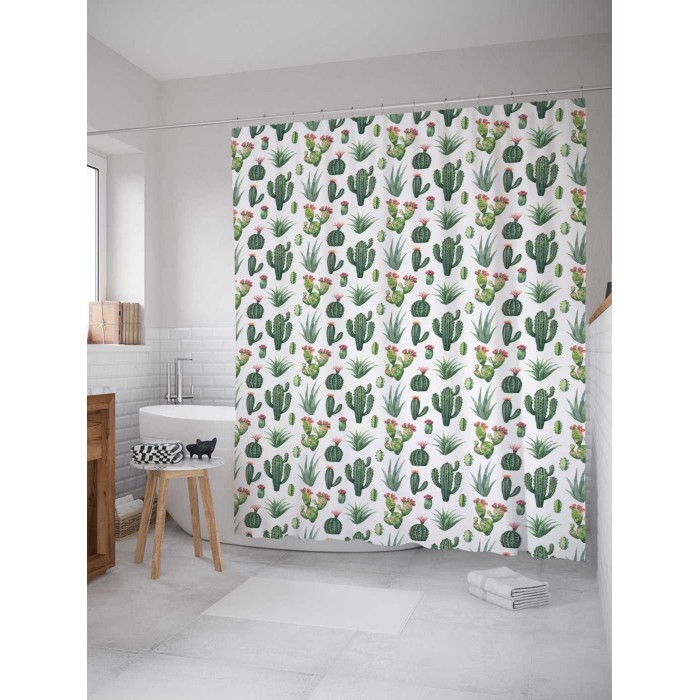 Шторка-занавеска для ванной JOYARTY Штора занавеска из сатена с крючками Маленькие кактусы 200х180 см (размер: 180х200)