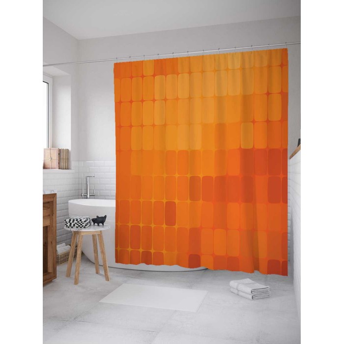 Шторка-занавеска для ванной JOYARTY Штора занавеска из сатена с крючками Геометрические узоры 200х180 см (размер: 180х200)