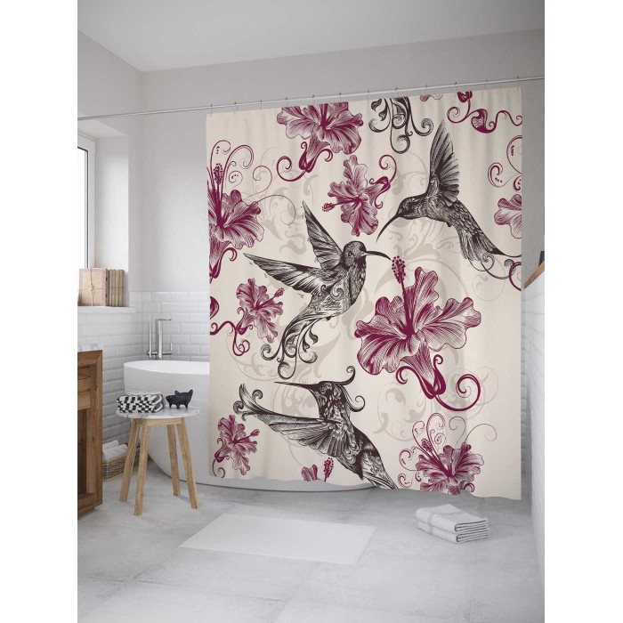 Шторка-занавеска для ванной JOYARTY Штора занавеска из сатена с крючками Колибри в работе 200х180 см (размер: 180х200)