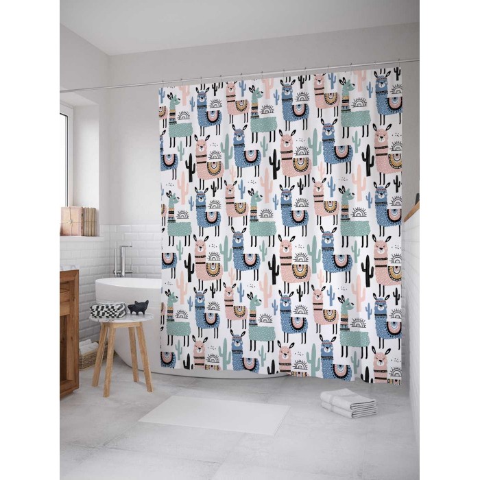 - Модель: Штора для ванной Милые альпаки 180х200 см