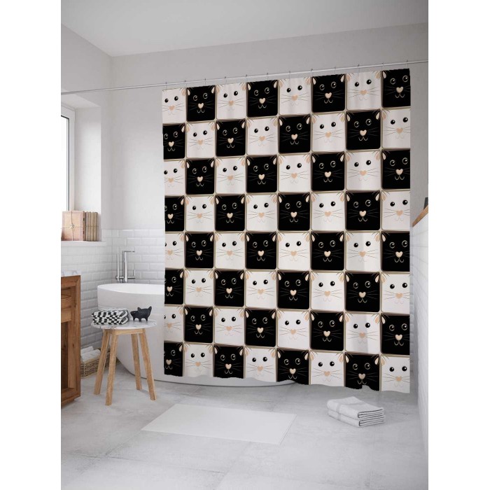 Шторка-занавеска для ванной JOYARTY Штора для ванной Котики 180х200 см