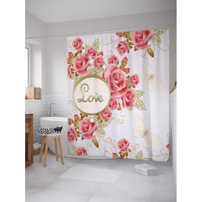 Шторка-занавеска для ванной JOYARTY Штора для ванной Любовная открытка 180х200 см