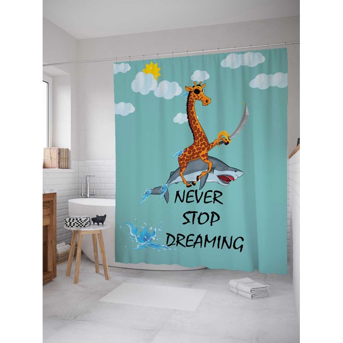 - Модель: Штора для ванной Никогда не прекращай мечтать 180х200 см