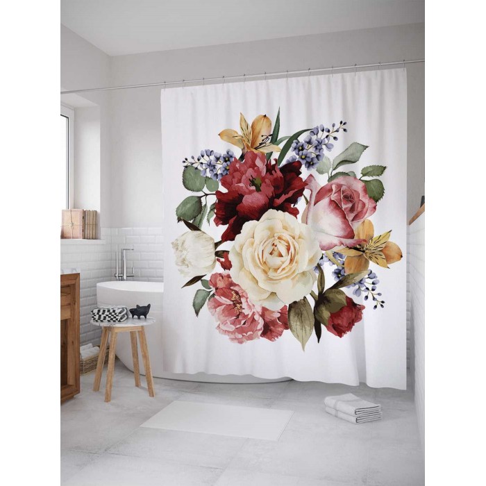 Шторка-занавеска для ванной JOYARTY Штора для ванной Собранный букет 180х200 см