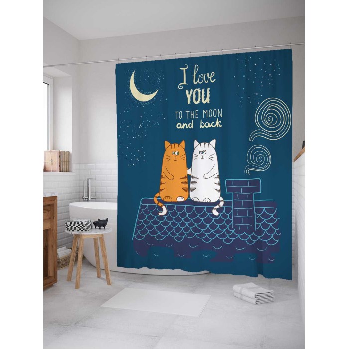 - Модель: Штора для ванной Влюбленные коты на крыше 180х200 см