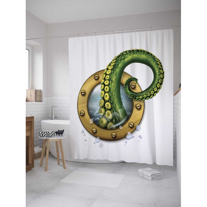 - Модель: Штора-занавеска для ванной из сатена с крючками Щупальца в каюте 200х180 см