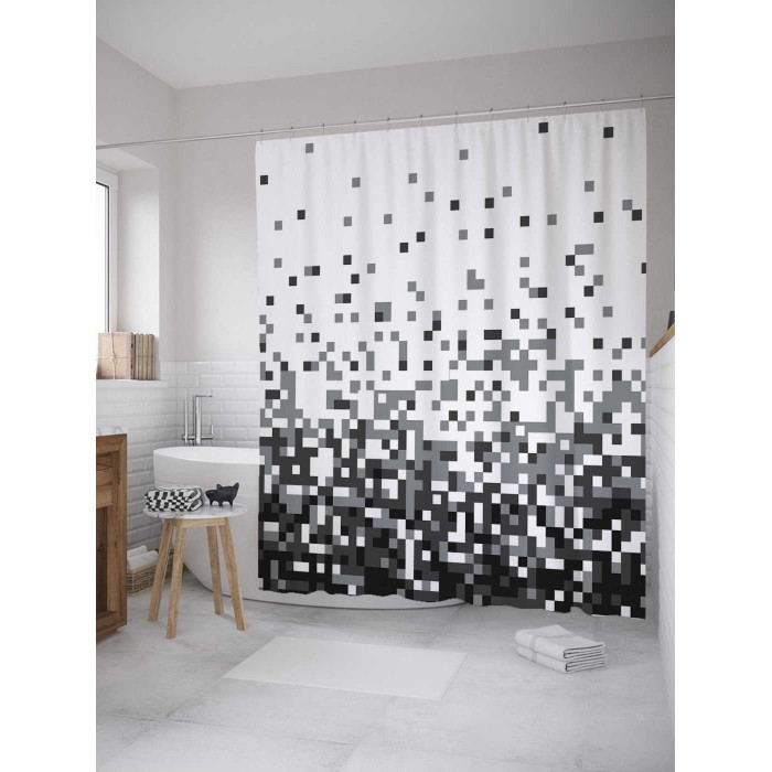 - Модель: Штора-занавеска для ванной из сатена с крючками Скопление клеток 200х180 см