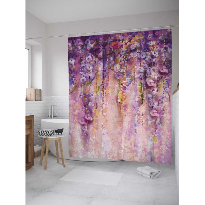 - Модель: Штора-занавеска для ванной из сатена с крючками Цветочное королевство 200х180 см