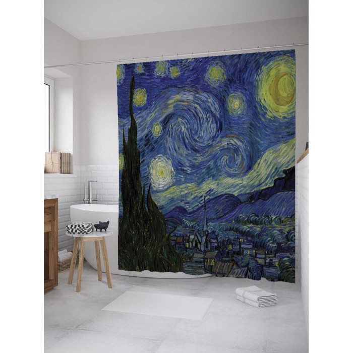 Красиво декорированная шторка, защищающая пол и оборудование ванной комнаты от брызг воды, изготовлена из полиэстера и обладает выраженными водоотталкивающими свойствами. Занавеска для ванной 180х200 комплектуется 12 прочными крючками из пластика и имеет в верхней части столько же обработанных на оверлоке отверстий. Декоративный рисунок нанесен на поверхность ткани при помощи фотопечати.