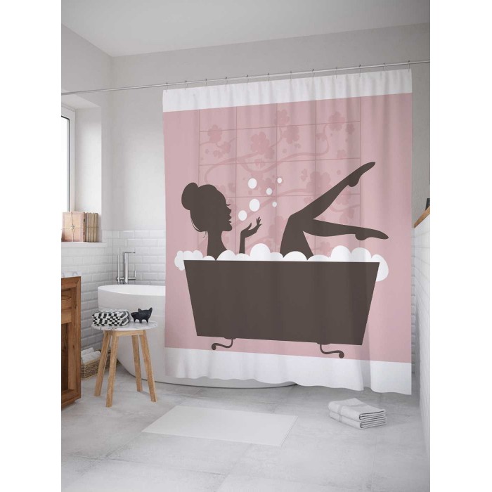 Шторка-занавеска для ванной JOYARTY Штора-занавеска для ванной из сатена с крючками Дама в ванной 200х180 см (размер: 180х200)