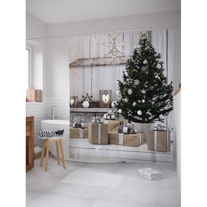 Шторка-занавеска для ванной JOYARTY Штора-занавеска для ванной из сатена с крючками Аккуратные подарки 200х180 см (размер: 180х200)