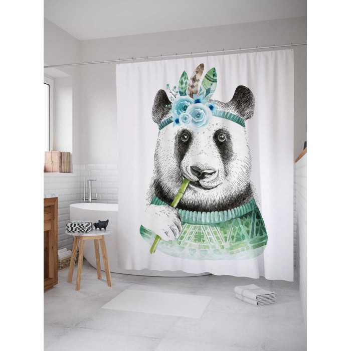 - Модель: Штора-занавеска для ванной из сатена с крючками Крутышка панда 200х180 см