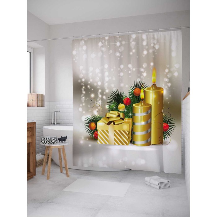 - Модель: Штора-занавеска для ванной из сатена с крючками Подарок при свечах 200х180 см