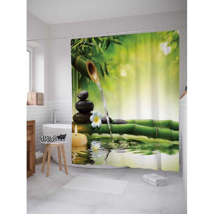 - Модель: Штора-занавеска для ванной из сатена с крючками Бамбуковый кран 200х180 см
