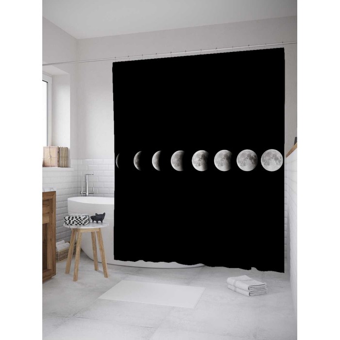 - Модель: Штора-занавеска для ванной из сатена с крючками Лунные изменения 200х180 см