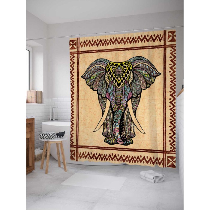 - Модель: Штора-занавеска для ванной из сатена с крючками Слон из грез 200х180 см