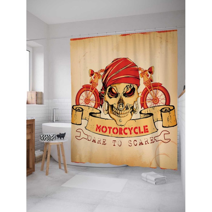 Шторка-занавеска для ванной JOYARTY Штора-занавеска для ванной из сатена с крючками Пират на мотоцикле 200х180 см (размер: 180х200)