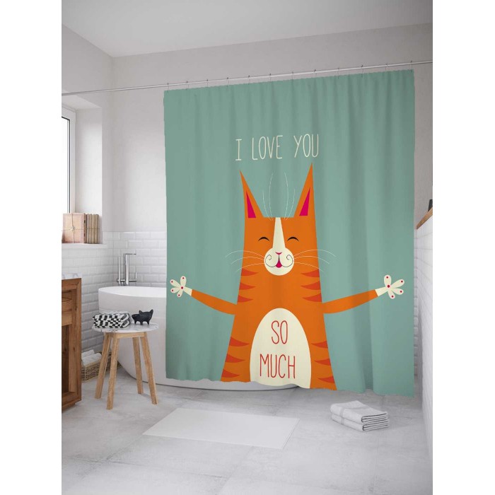 - Модель: Штора-занавеска для ванной из сатена с крючками Любовь без границ 200х180 см