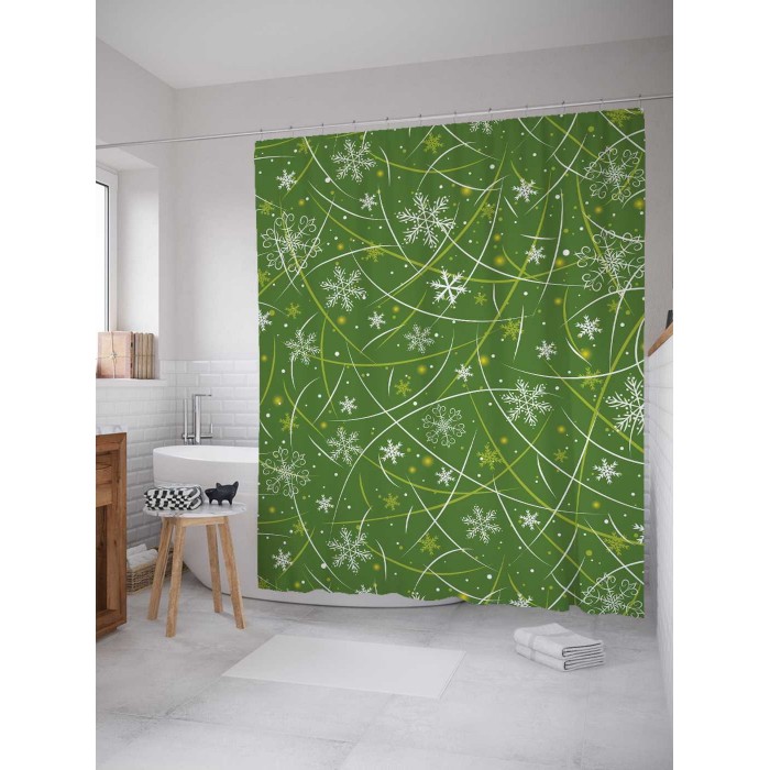 - Модель: Штора-занавеска для ванной из сатена с крючками Приятные снежинки 200х180 см