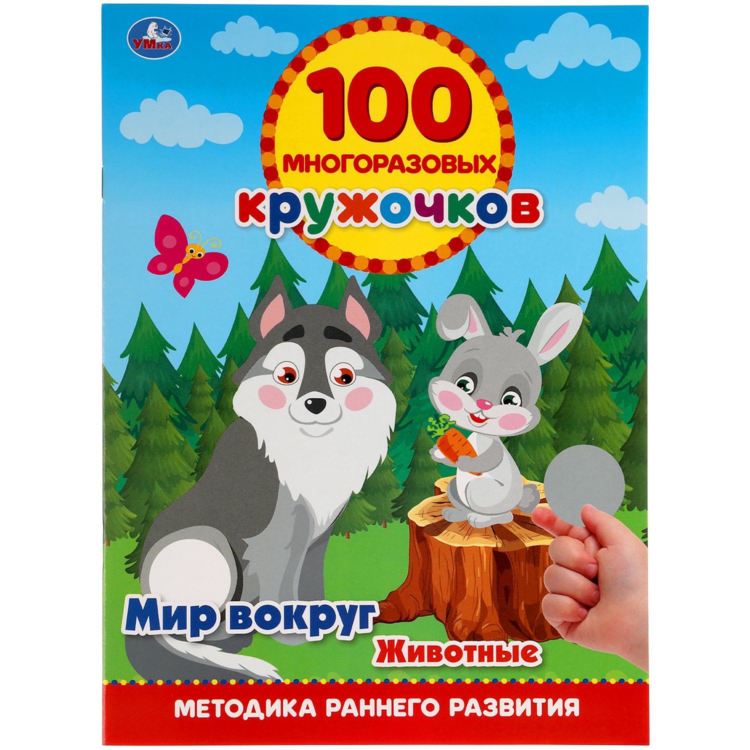 Мир вокруг. Животные. .100 многоразовых кружочков. 210х285мм, 16 стр. + наклейки. Умка в кор.50шт