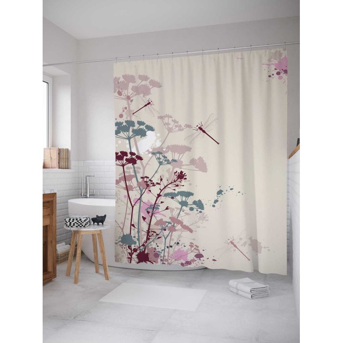 Красиво декорированная шторка, защищающая пол и оборудование ванной комнаты от брызг воды, изготовлена из полиэстера и обладает выраженными водоотталкивающими свойствами. Занавеска для ванной 180х200 комплектуется 12 прочными крючками из пластика и имеет в верхней части столько же обработанных на оверлоке отверстий. Декоративный рисунок нанесен на поверхность ткани при помощи фотопечати. Такие принты не боятся влаги и не смываются даже очень горячей водой.