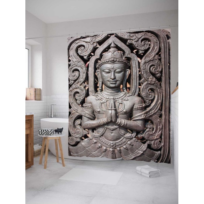 - Модель: Штора занавеска из сатена с крючками Металлический будда 200х180 см